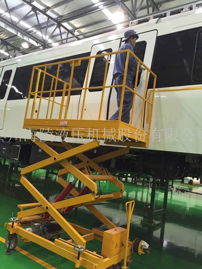 500KG剪叉式液壓升降平臺(tái)應(yīng)用于中車南寧軌道交通