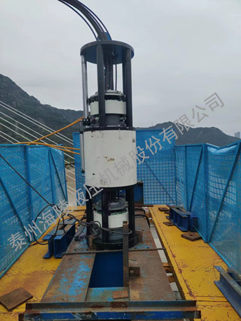 該裝置采用精密提升千斤頂和高強度低松弛鋼絞線通過計算機控制來提升、下放、平移重物,實現(xiàn)同步張拉和提升。工作原理是利用鋼絞線與鎖緊缸裝置把重物和提升千斤頂連接起來,利用提升千斤頂、鎖緊裝置交替動作和千斤頂活塞與油缸、鋼絞線的相對運動使重物達到位移的目的。它具有高精度、高強度、高效率等優(yōu)點,被廣泛應用于大型橋梁、高層建筑、核電站、水處理廠等領域的結構安裝和維修。